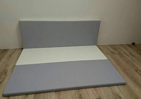 實品照,拆封時沒有甚麼異味表層是防水材質,只需要用濕毛巾擦拭容易清潔,做工蠻細緻表面平滑,拉鍊頭藏在布料當中,可防止寶寶刮傷,四公分的厚度很扎實,不用擔心撞傷。很期待之後和寶貝一起使用。