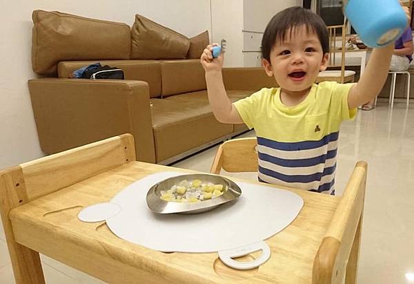 白色上蓋還可以拿來當餐碗的防滑墊,防止寶寶打翻餐碗。