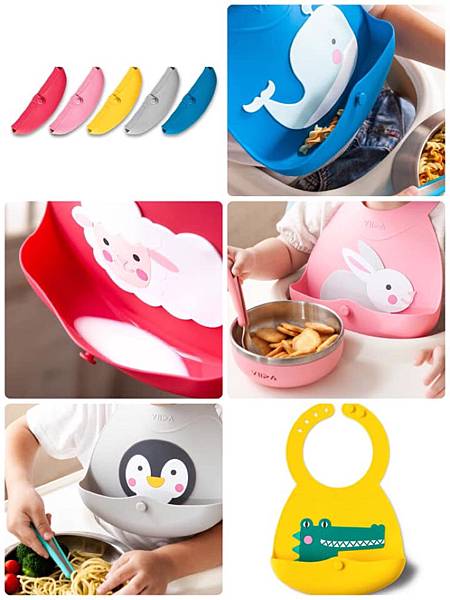 Joy便攜式矽膠圍兜共有五種可愛的動物圖案,是我們最喜歡的單品,貼心的收納固定扣設計,輕巧方便不佔媽媽包空間。